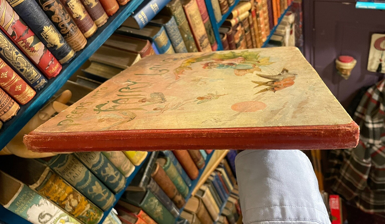 London; Ernest Nister and New York;E P Dutton & Co, undated [1896]. First Edition. Nister book 633. Large oblong format. Original red cloth spine, colour pictorial paper boards. Front cover shows the Babes in the Wood riding on a leaf in the air harnessed to a pair of robins. Green/white floral endpapers. With six stunning three-dimensional stand-up fairy scenes.