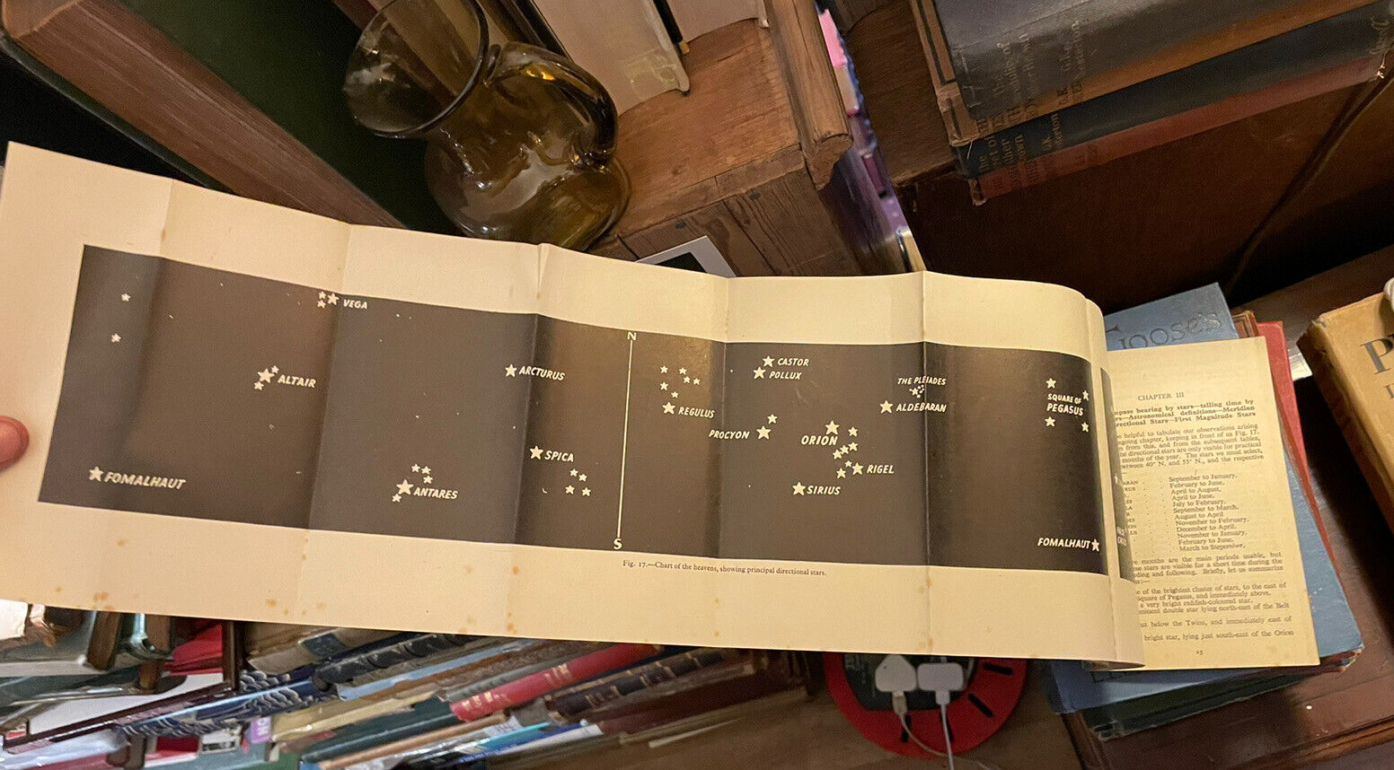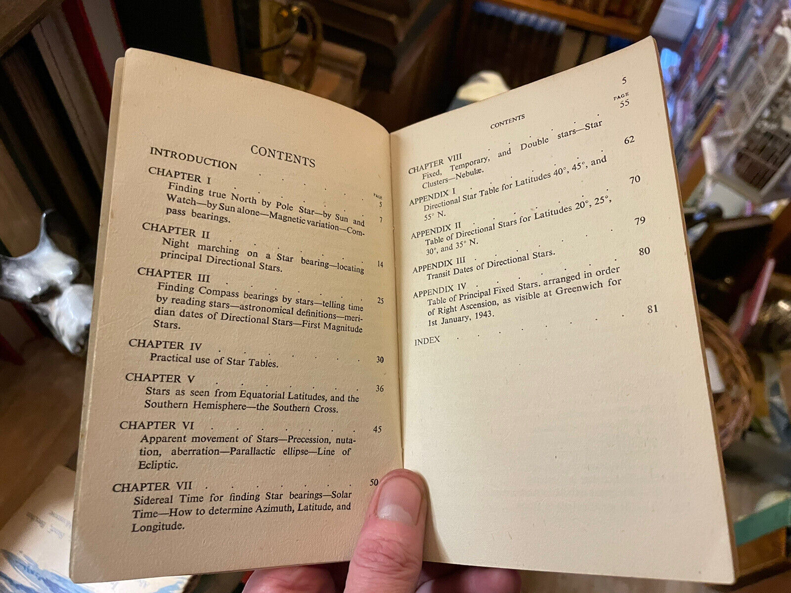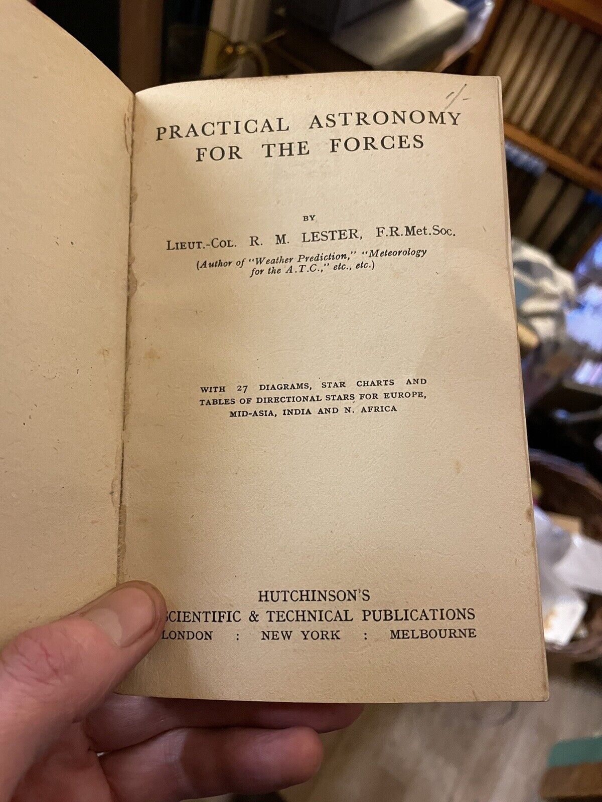 This scarce little book was published by Hutchinson's Scientific & Technical Publications, undated but circa 1943. Paperback book with 84 pages and with 27 diagrams, star charts and tables of directional stars for Europe, Mid-Asia, India and N. Africa (in other words the WW2 war zones). Includes a large fold-out plate.