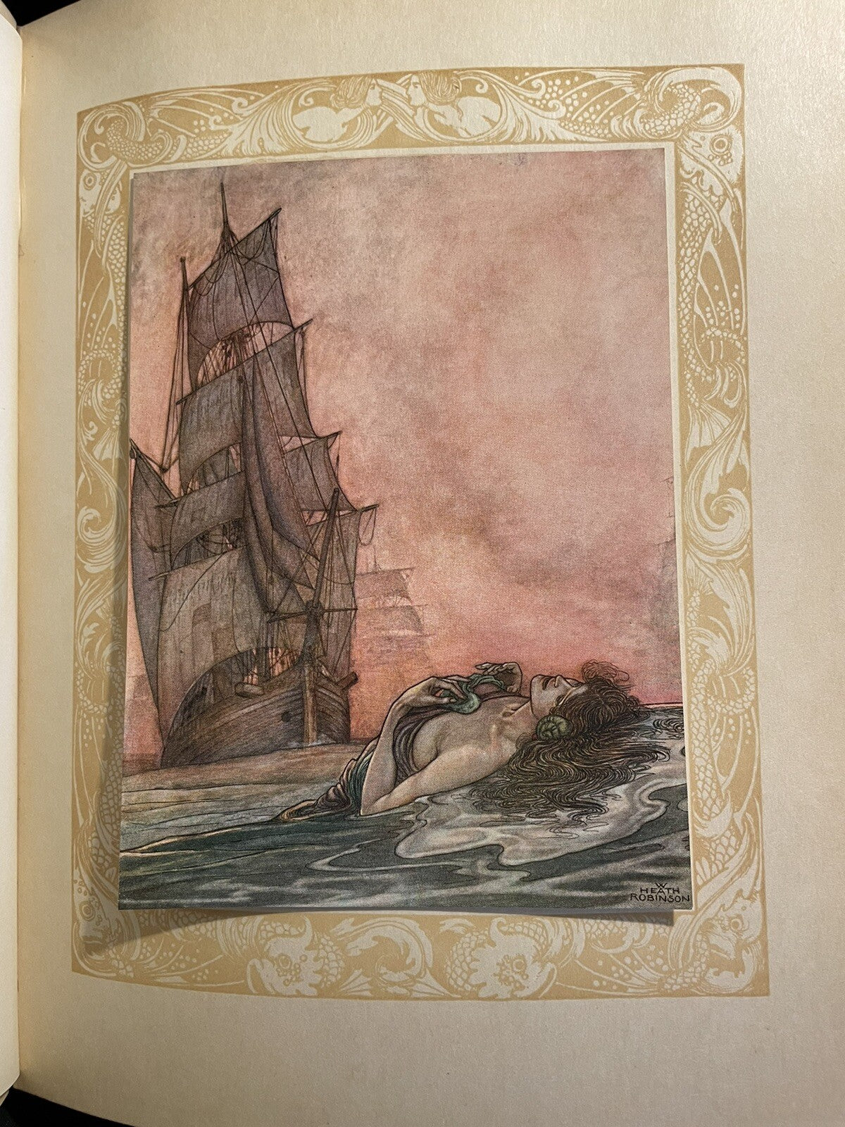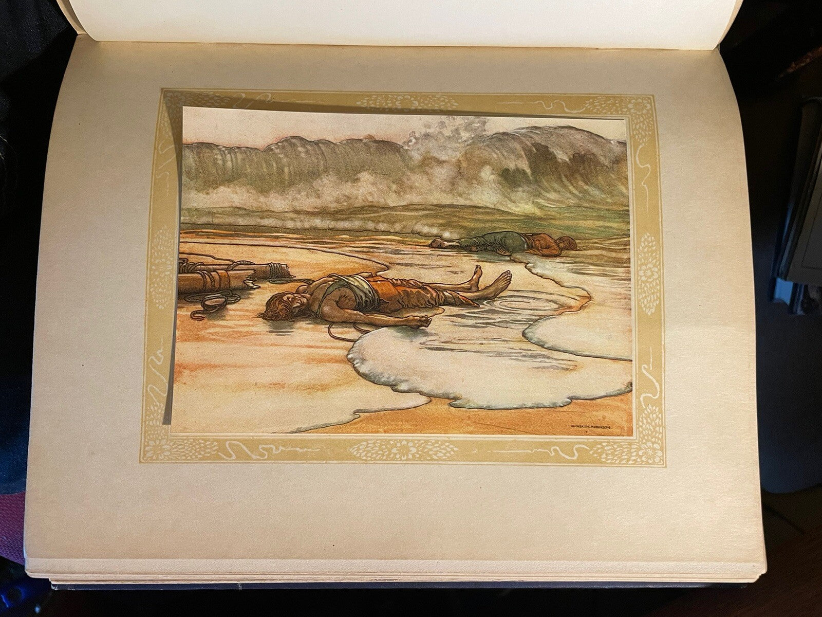 Published by Hodder and Stoughton, London, [1909]. First Edition. Large hardback measuring 29 x 22 cm. Blue cloth binding with gilt decoration and titles. Plain endpapers, no pagination, with 30 wonderful tipped-in tissue-guarded colour plates, mounted on card with green decorative borders, plus numerous b/w illustrations.