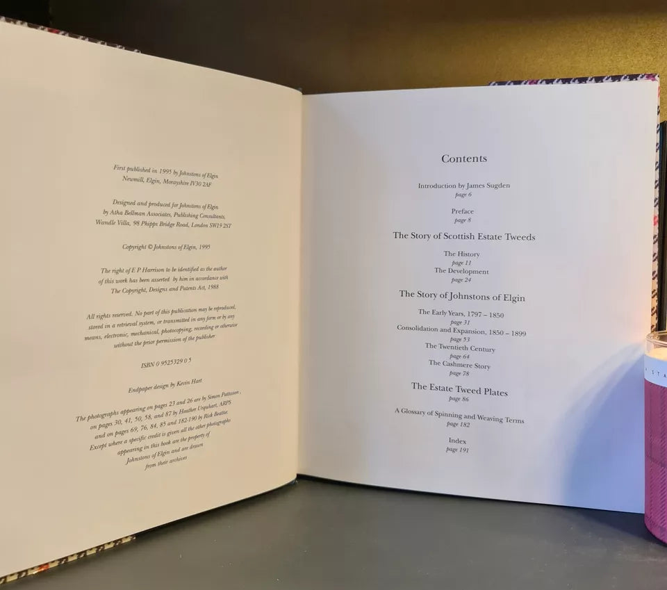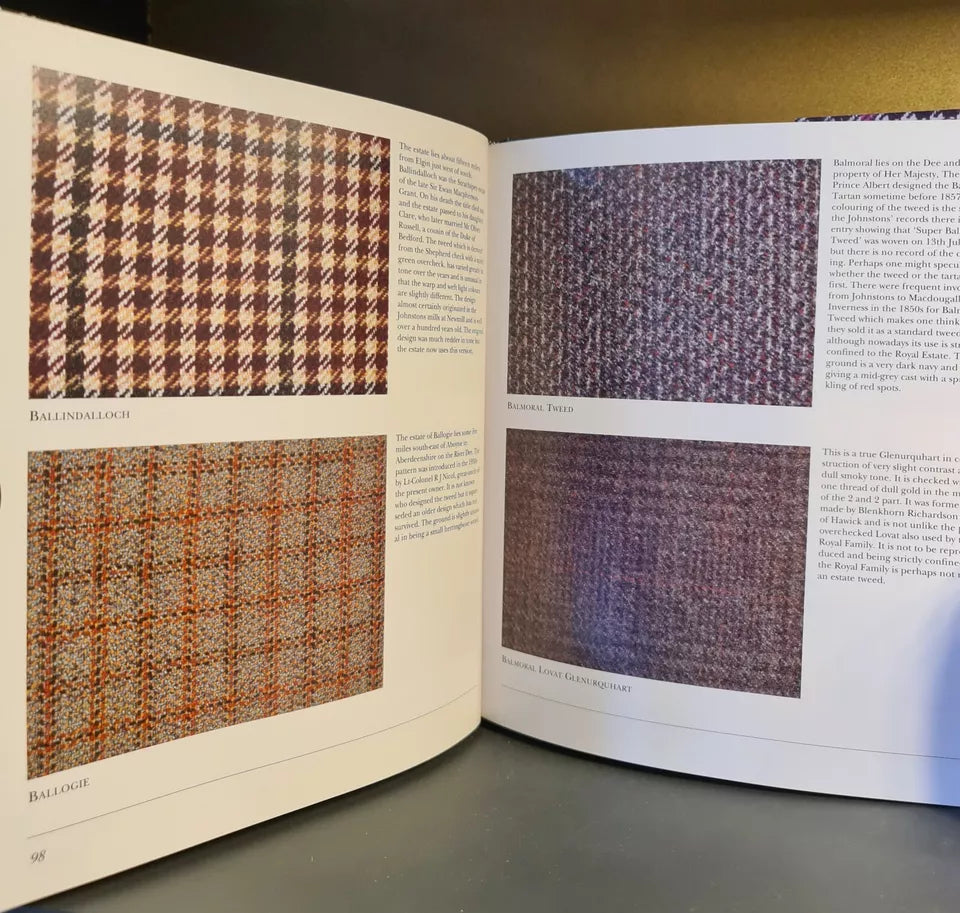 The main section of the book is a directory of estate tweeds. In 1968 Edward Harrison wrote Our Scottish District Checks which was the forerunner of this volume. In it he listed and illustrated 84 estate tweeds and 22 traditional and regimental tweeds.