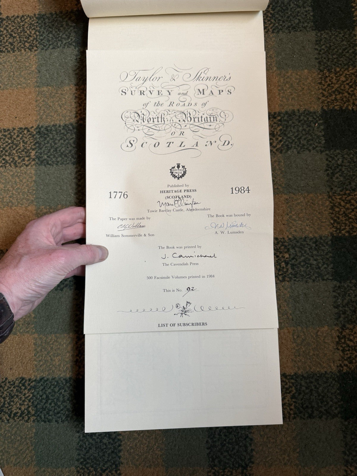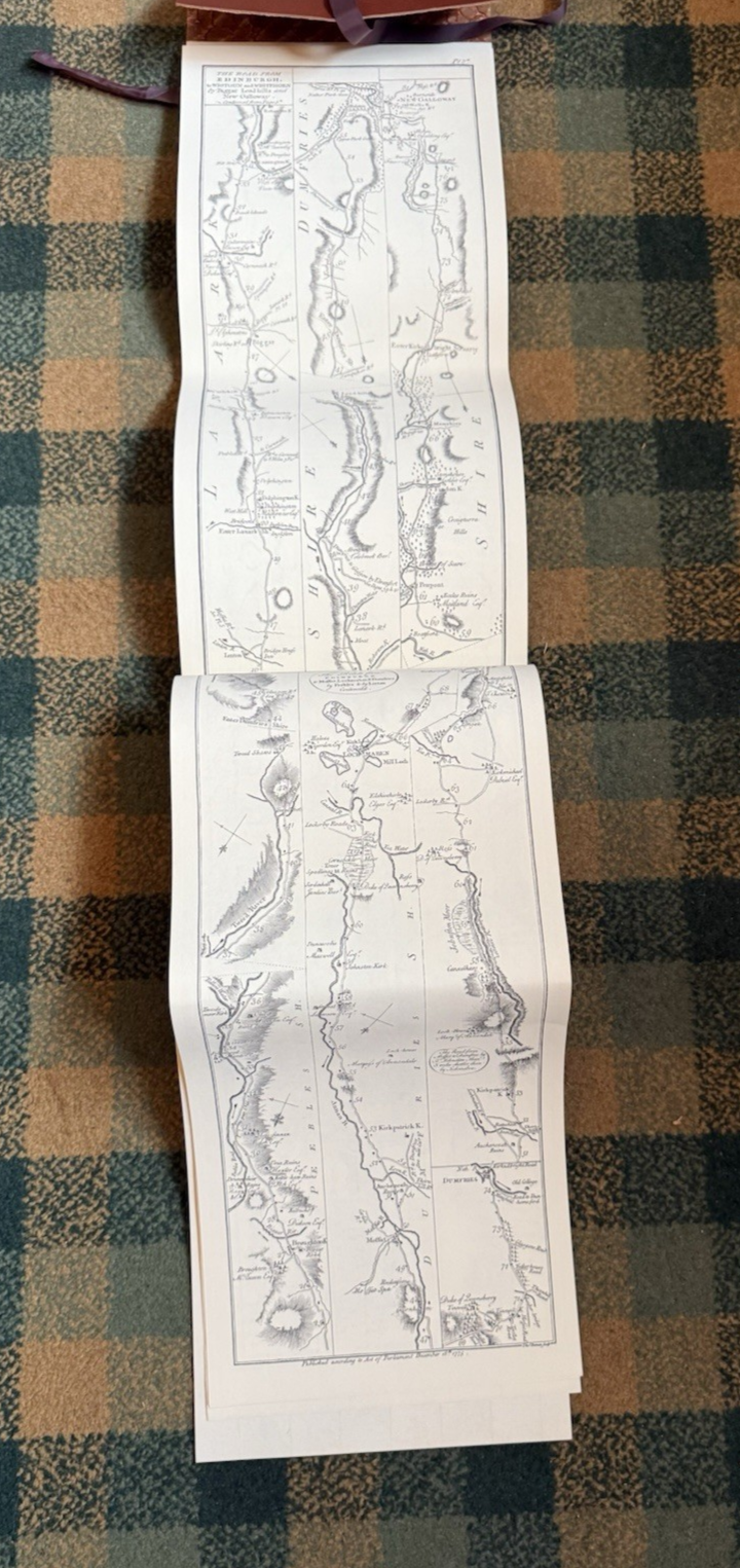 Limited edition facsimile reprint. No.92 of 500. 52 × 22cm folded over to 22 × 27cm; [35]pp. Green paper-covered presentation box with gilt title and decoration; Brown soft-cover faux leather binding, folded and tied with brown ribbon, as published; gilt title and decoration on upper cover. Pages of engraved maps reproduced in facsimile. Folding map at the back. Signed by publisher, paper-maker, printer and binder on the edition page. A scarce and nice limited edition facsimile reprint of the 1776 edition, produced by the Cavendish Press.