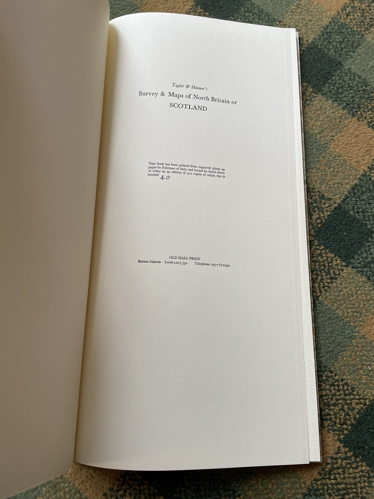 Old Hall Press, Leeds, 1991. Limited Edition (500 copies printed of which this in number 40). Hardcover Facsimile. Tall, narrow folio (20 x 9.5 inches). Key map plus 61 road maps & 2 pages tables. Quarter cloth over hand marbled boards.