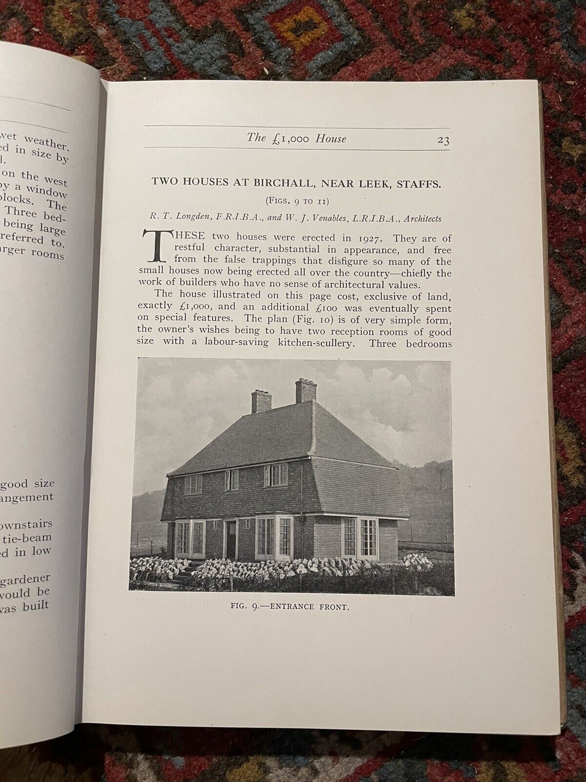 As a definite sum forms part of the title of this book, it is _Briefly, the aim has been to illustrate a number of houses which have cost not more than £1,000 to build. That means the builder's contract, including such structural items as grates, bath, sink, etc. The architect's fees are additional to this sum, and so is the cost of the site, its fencing and lay-out.
