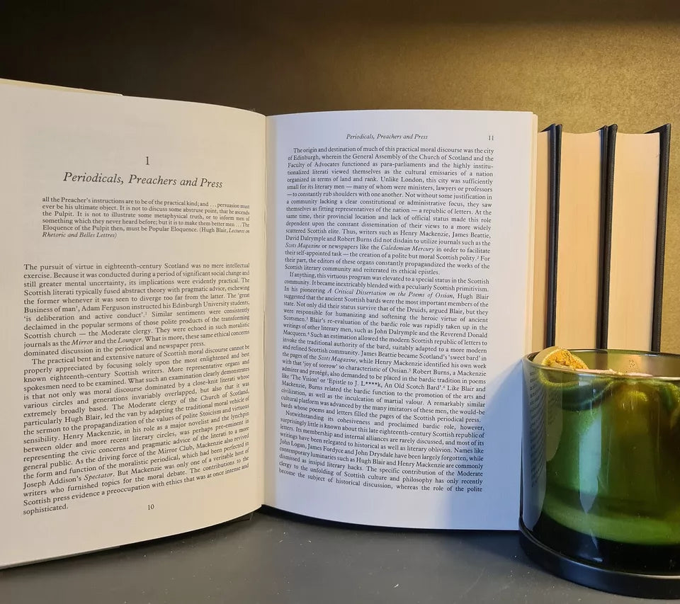 The moral preoccupations of eighteenth-century Scotsmen have not received the attention that they deserve and while the concept of virtuous discourse may seem a novel tool for the examination of Scottish culture, the examination of the ethical vocabulary and its usage among the late eighteenth-century Scottish literati does serve two particularly useful functions. Not only does it avoid such increasingly anachronistic perspectives as the Scottish contribution to the disciplines of economics or sociology, but it also allows for reappraisals of Scottish culture based on a wider sample of texts and thinkers.