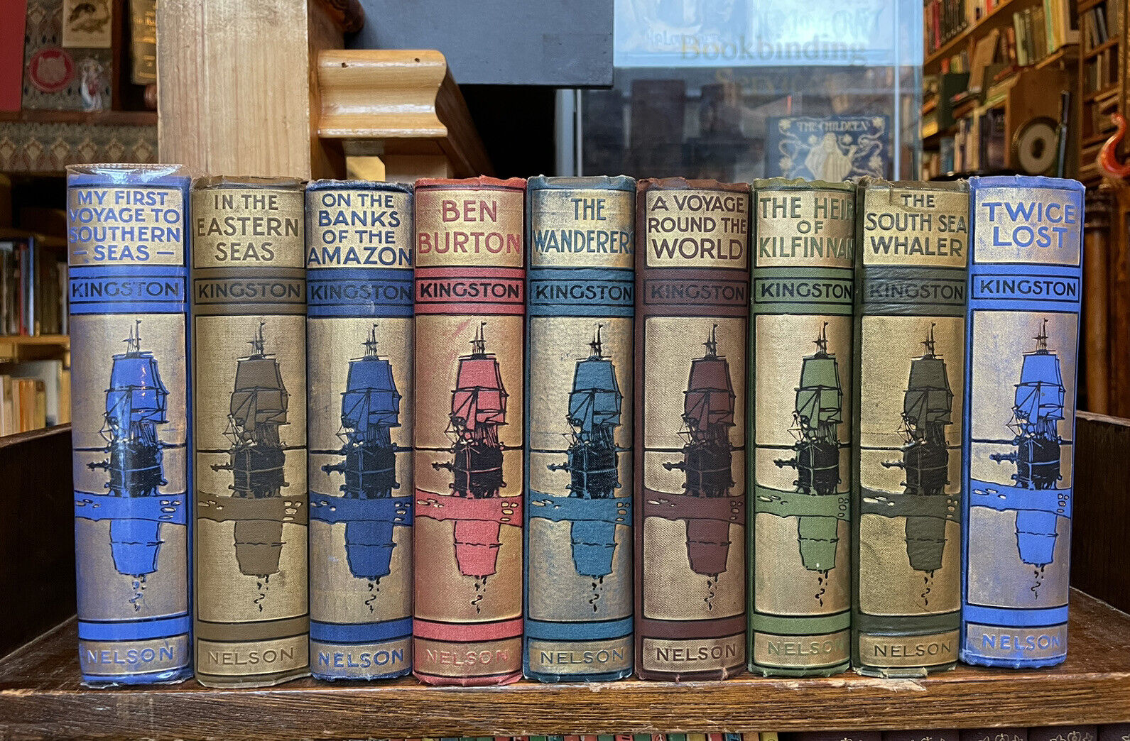For sale we have 9 books by W H Kingston and in uniform decorative bindings which are all published by Nelson.