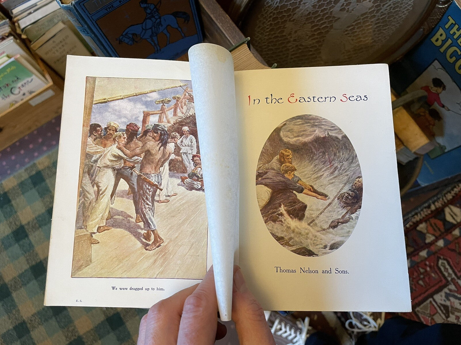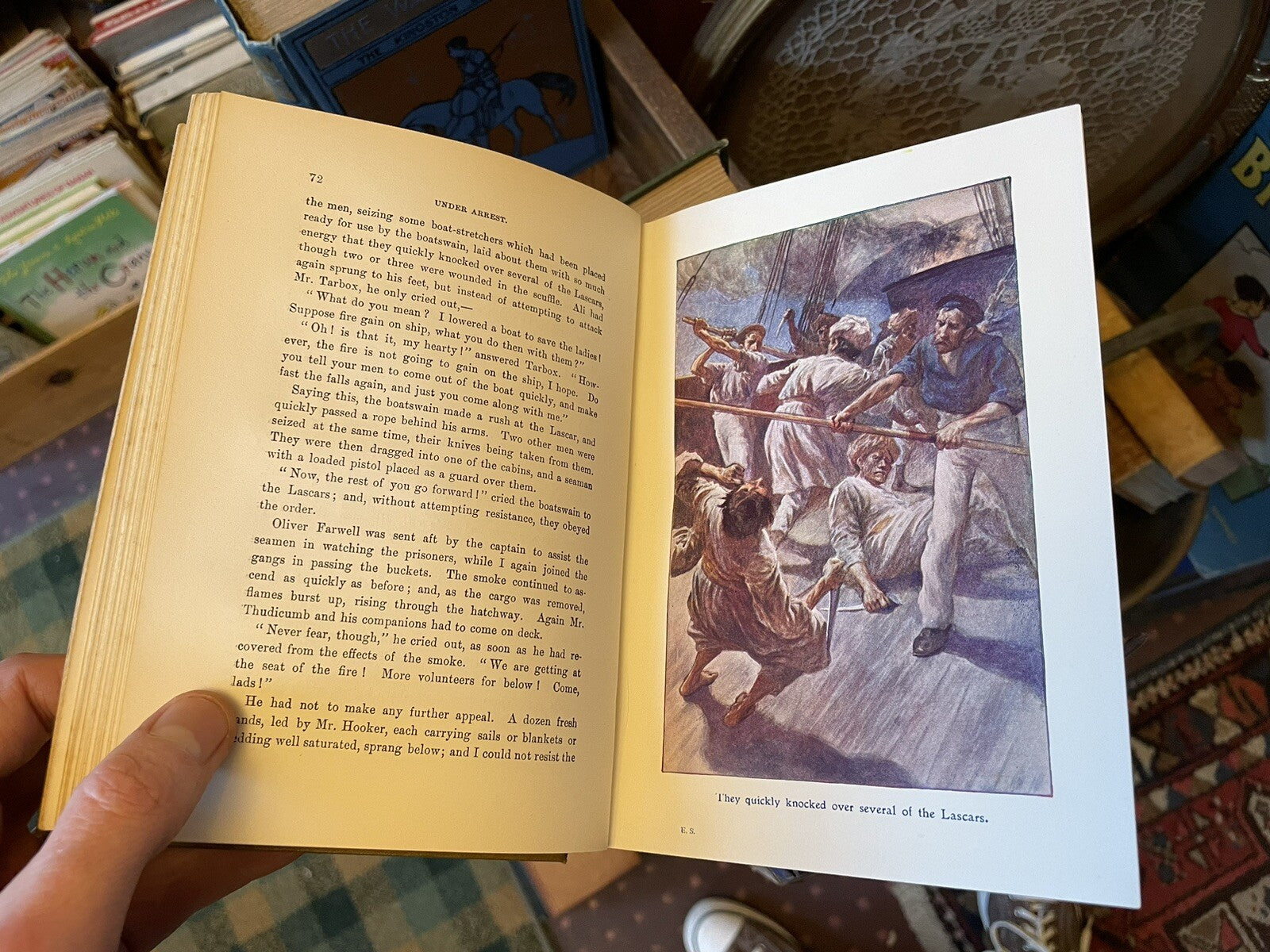 All 9 books in good condition. All cloth bindings are in good condition. Pages good throughout with perhaps the odd bit of light spotting to the odd page. All colour plates present to all volumes. Overall a good lot of adventure sea stories. Handsome on the shelf too.