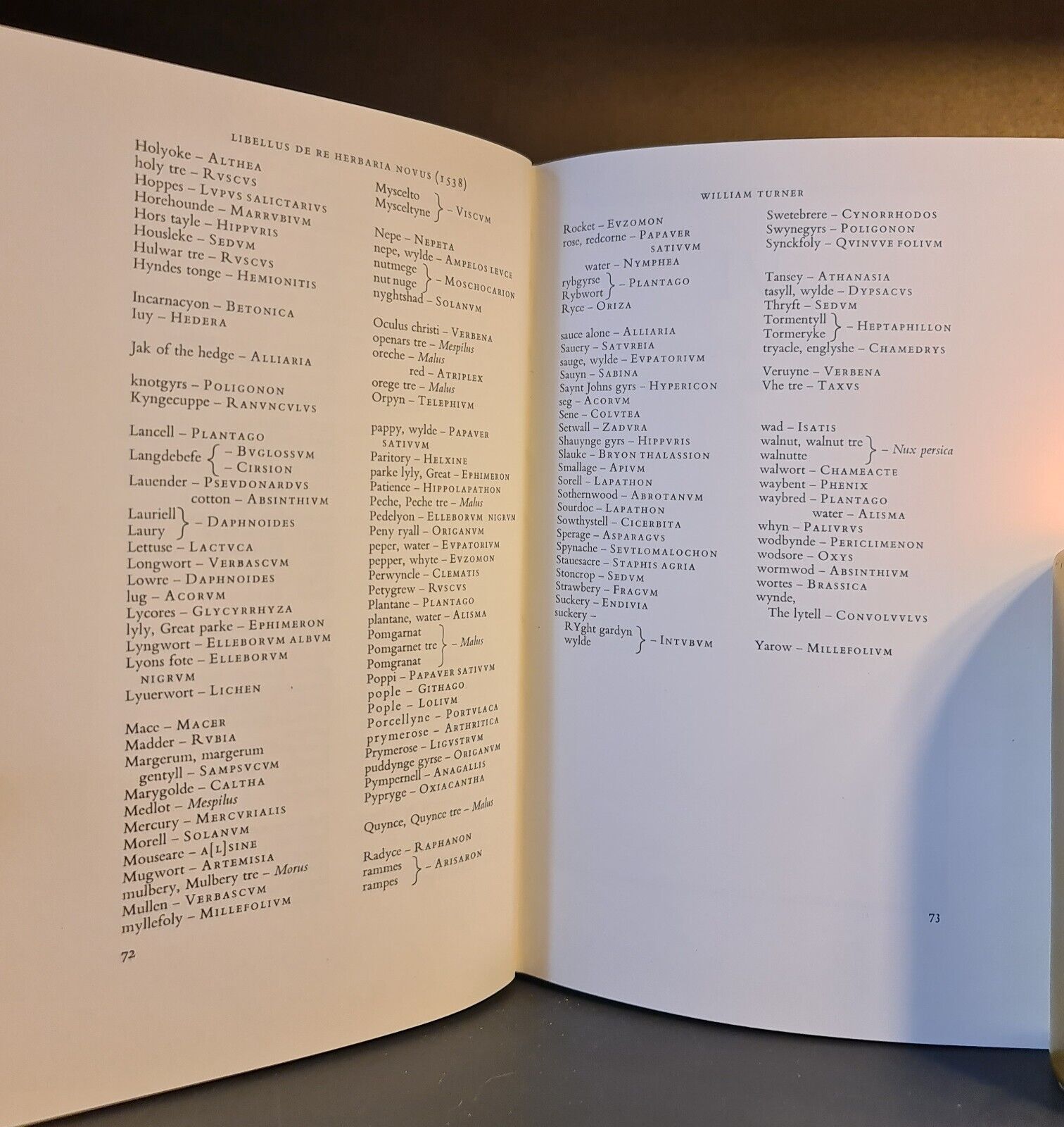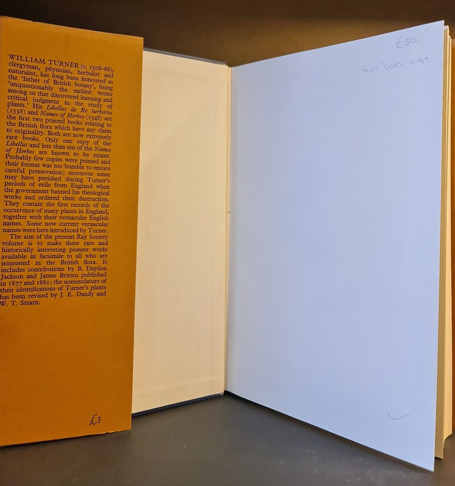 The aim of the present Ray Society volume is to make these rare and historically interesting pioneer works available in facsimile to all who are interested in the British flora. Libellus de Re Herbaria 1538, The Names of Herbes 1548 includes contributions by B. Daydon Jackson and James Britten published in 1877 and 1882; the nomenclature of their identifications of Turner's plants has been revised by J. E. Dandy and W. T. Stearn.
