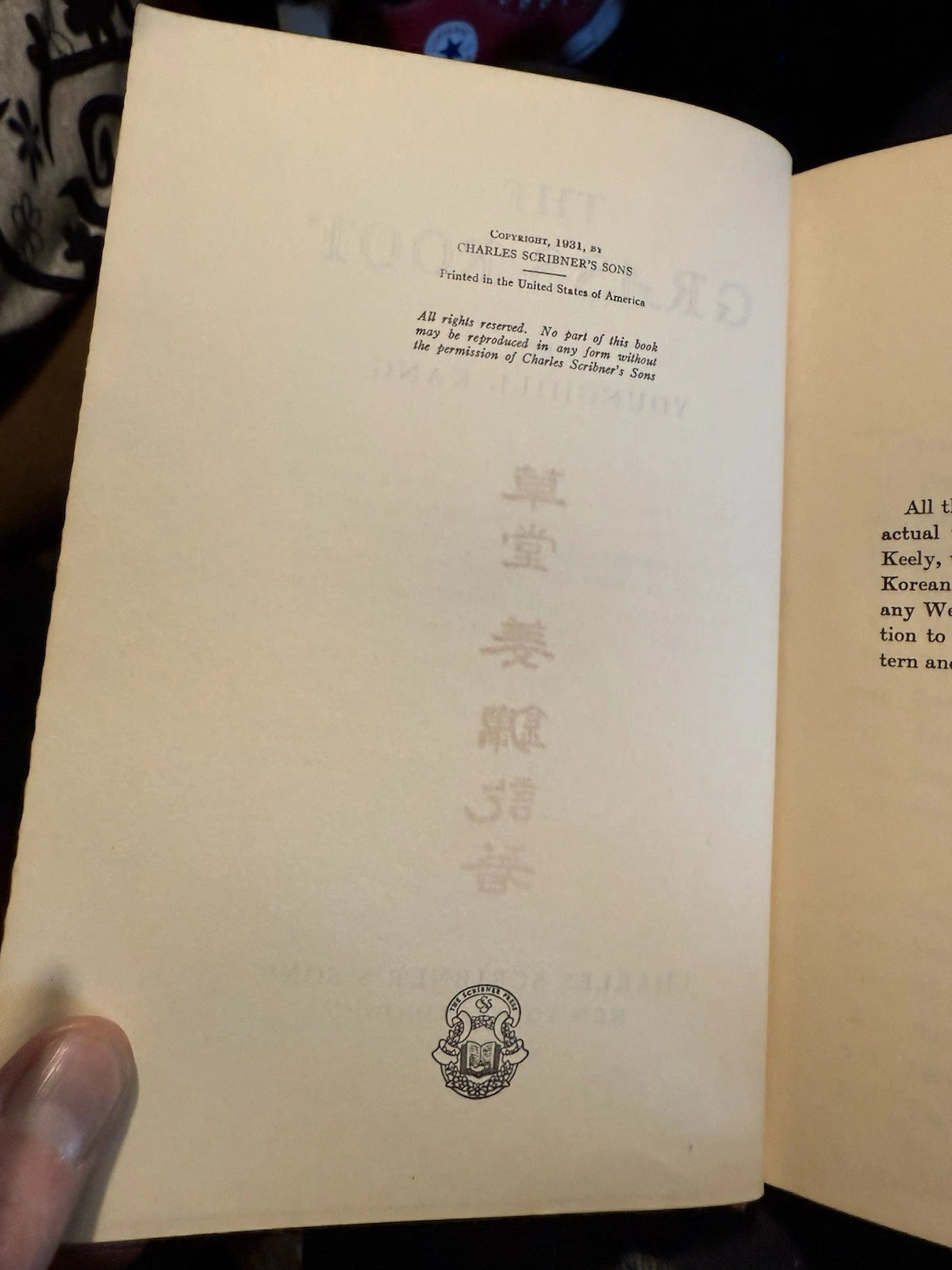 Younghill Kang : : Grass Roof : : Scribner's New York 1st 1931